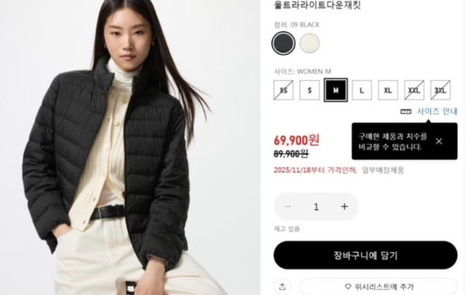 유니클로 감사제 할인이 적용되지만, 인기 색상과 사이즈는